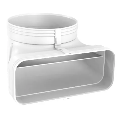 Profils intégrés guidage air pour propriétés écoulement optimalesAdapt. compact carré à rond 90°, 130 mm prof. et 136 mm hauteur