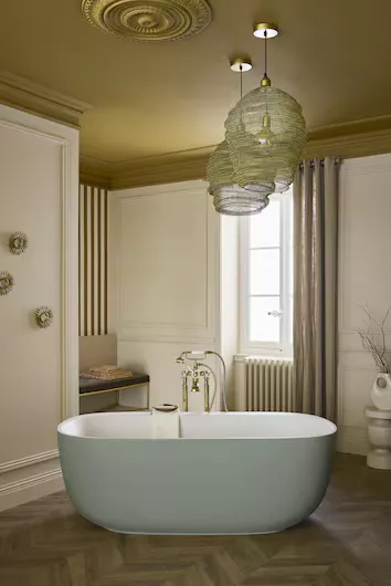 Une baignoire îlot, majestueuse, qui s’installe en angle ou au milieu d’une salle de bain (disponible en semi-îlot pour installation contre un mur, voir article similaire en bas de la page).