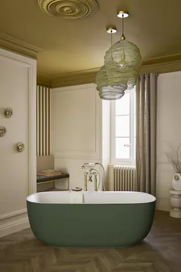 Une baignoire îlot, majestueuse, qui s’installe en angle ou au milieu d’une salle de bain (disponible en semi-îlot pour installation contre un mur, voir article similaire en bas de la page).