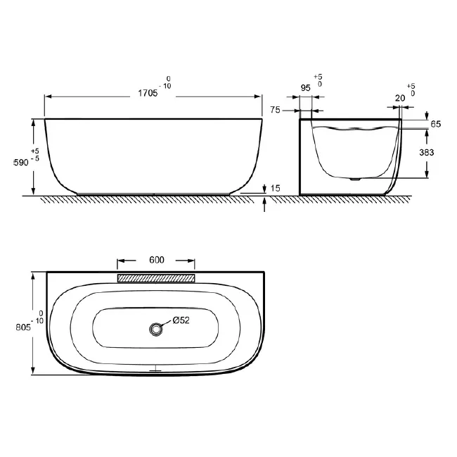 Volume (L) : 265/195 (volume trop-plein/ volume corps immergé de 70kg)