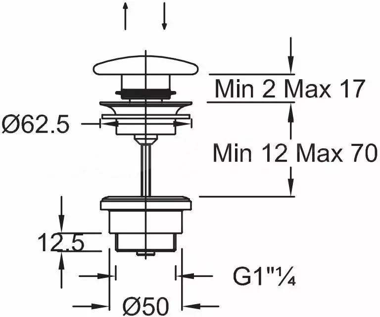 Bonde de vidage clic-clac pour vasque avec trop-plein Clapet finition SublimTech (traitement protecteur)Délai de fabrication : 6 à 8 semaines