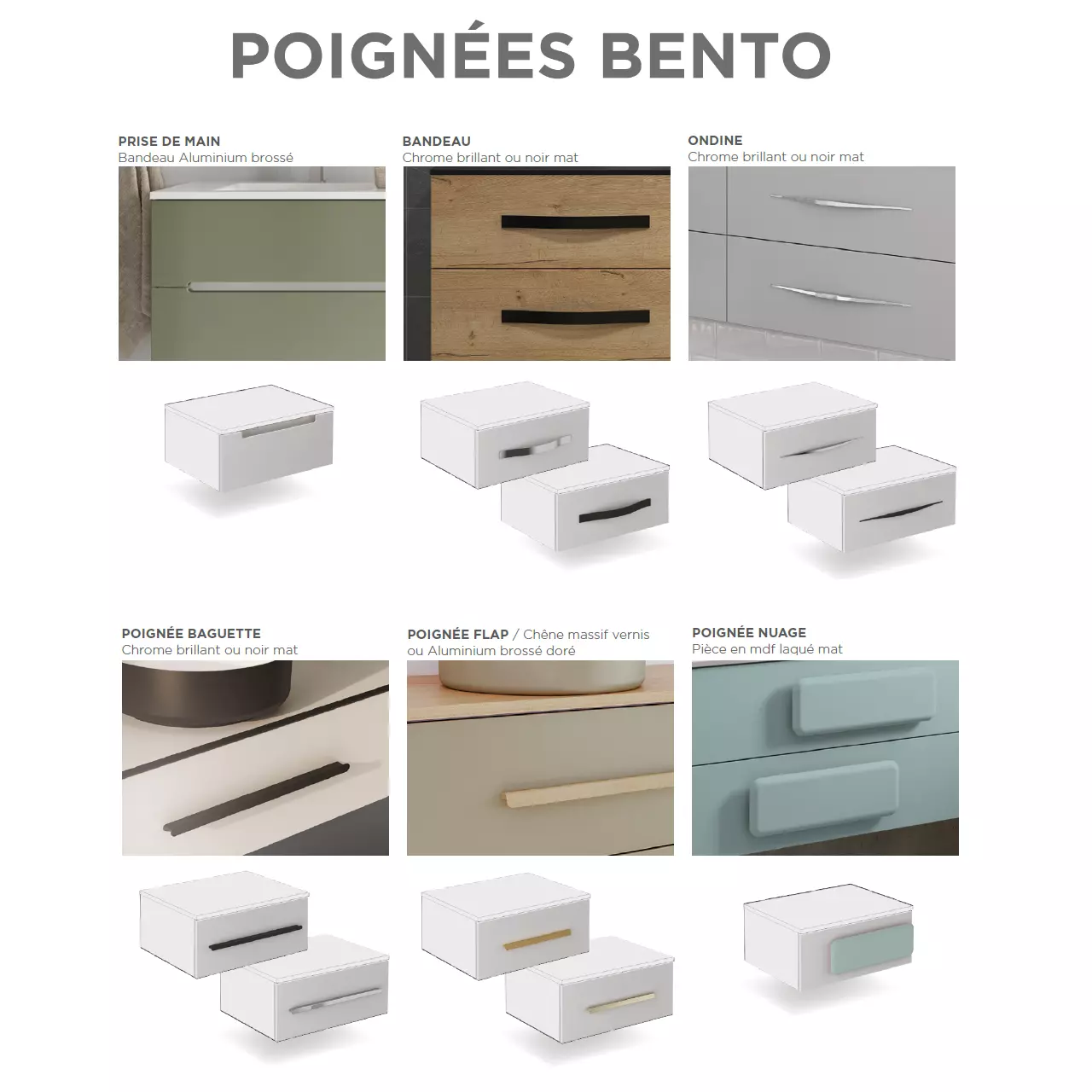 6 modèles de poignées (finitions : chrome / noir mat / aluminium brossé / doré brossé / chêne massif / laquée)