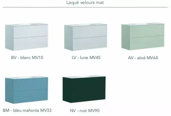 Proposés en 4 dimensions avec simple ou double vasque, les modèles sont déclinés en laques mates velours