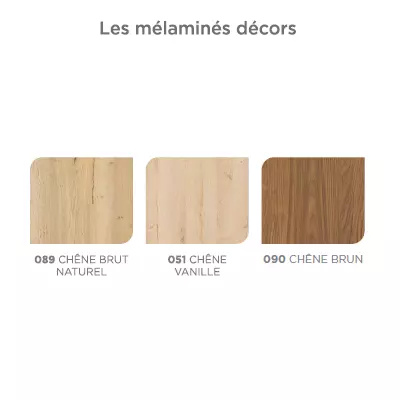 Disponible en L60, L80, L100 (simple vasque), L120 et L150 cm (simple ou double vasque)