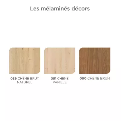 Choix du coloris mélaminé bois sans supplément de prix pour meuble Decotec (uniquement pour la collection Bento).