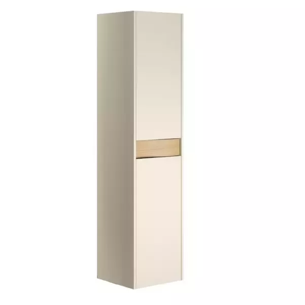 Côtés et façades laqué + bandeau cannelée en placage Chêne naturel.