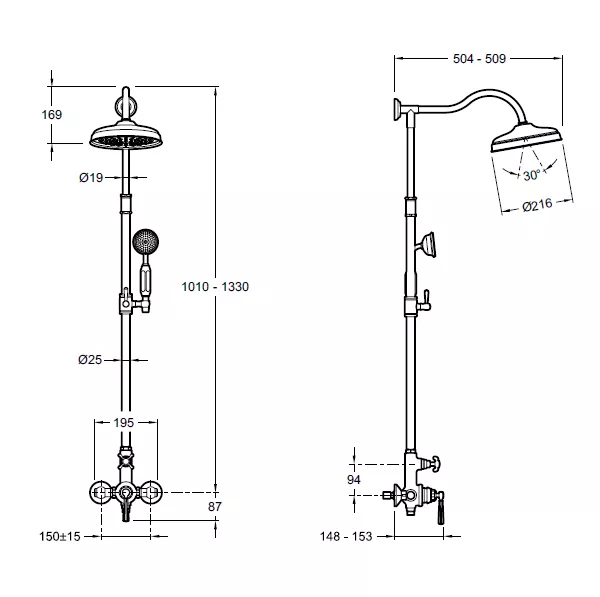 Colonne de douche avec mitigeur mécanique.