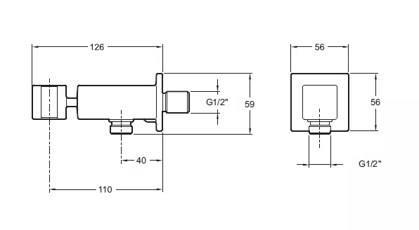Coude de raccordement mural, pour flexible de douche, avec support de douchette sur rotule orientable, clapet anti-retour.
