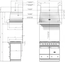 Habillage arrière mural en inox avec barre support porte ustensiles pour ensemble avec hotte Lacanche