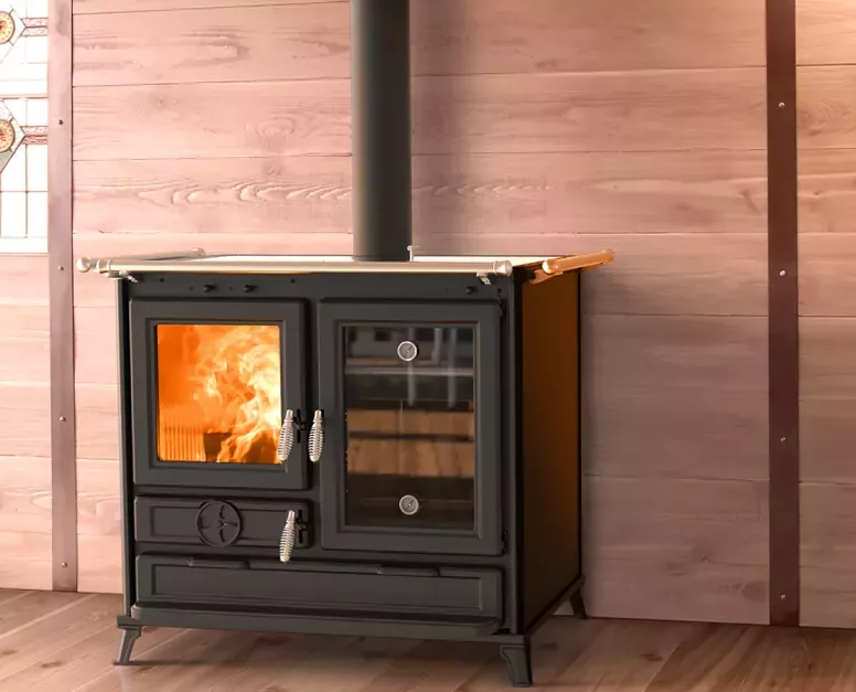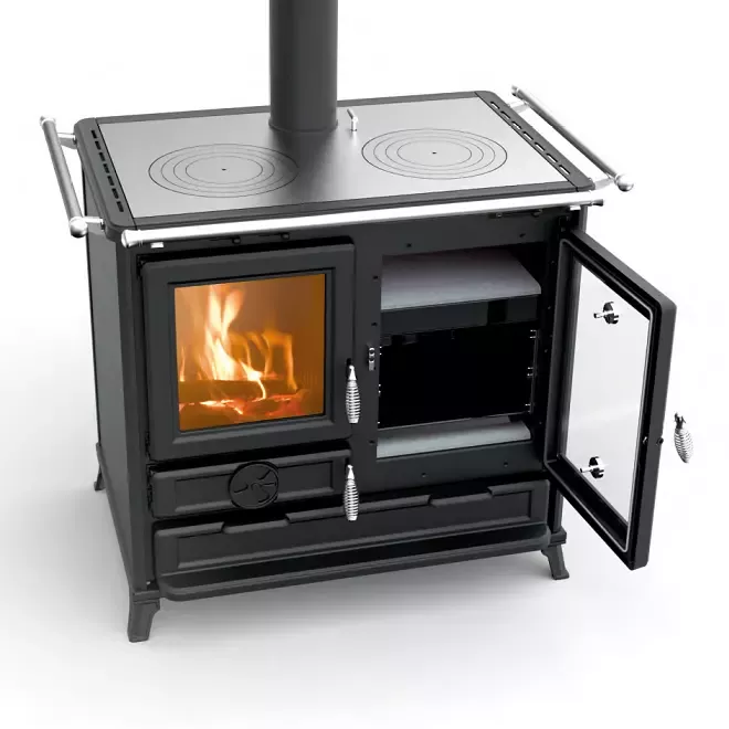 grâce à un parcours des fumées qui lui est réservé. Les deux fours sont dotés d'une base en pierre ollaire et d'un thermomètre individuel.