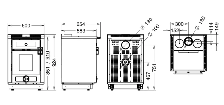 4 sorties de fumées disponibles Ø130 mm (3 supérieures - 1 postérieure)