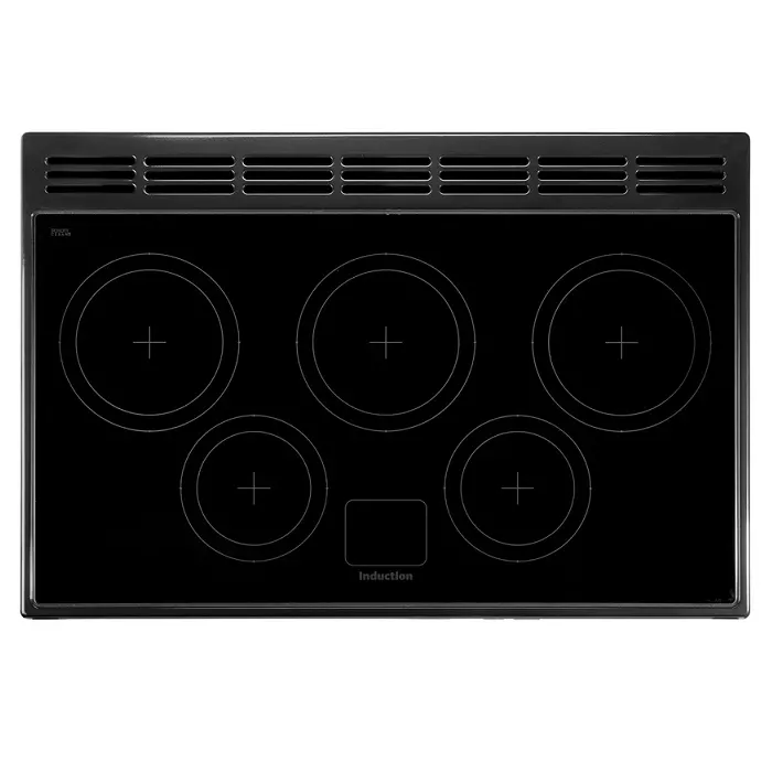 Puissance table induction : 1.85 / 1.15 / 1.85 / 1.15 / 1.85Mini-crédence Classic détachable, barre à torchons, bandeau de commandes coordonné, plinthe noire