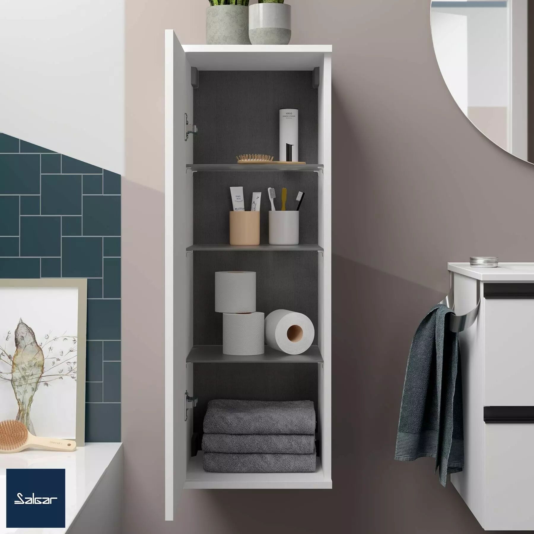 Demi-colonne ALLIANCE 35x100cm 1 porte réversible White cotton - SALGAR Réf. 96961