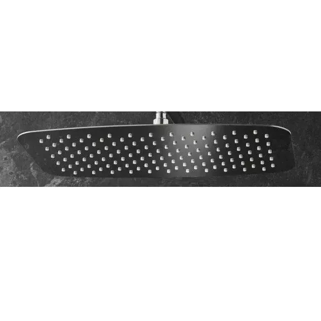 Douche de tête Oblo Design rectangulaire ultra-plate 400 x 250 mm, en métal.Rotule orientable.Epaisseur : 6 mm.Débit : 15 l/mn.Picots anti-calcaire.