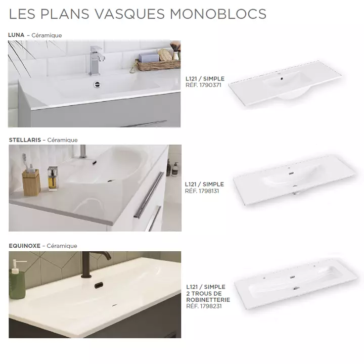 Dimensions : L60, L80, L100 (simple vasque), L120 et L150 cm (simple ou double vasque)
