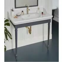 TRADITION : Inspiré de modèles historiques, le plan-vasque reprend les codes d'antan avec le dosseret anti-éclaboussure, le trop-plein 3 trous et la bonde en céramique avec le monogramme JD.
