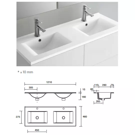 Plan-vasque en céramique percé 2 trous de robinetterie