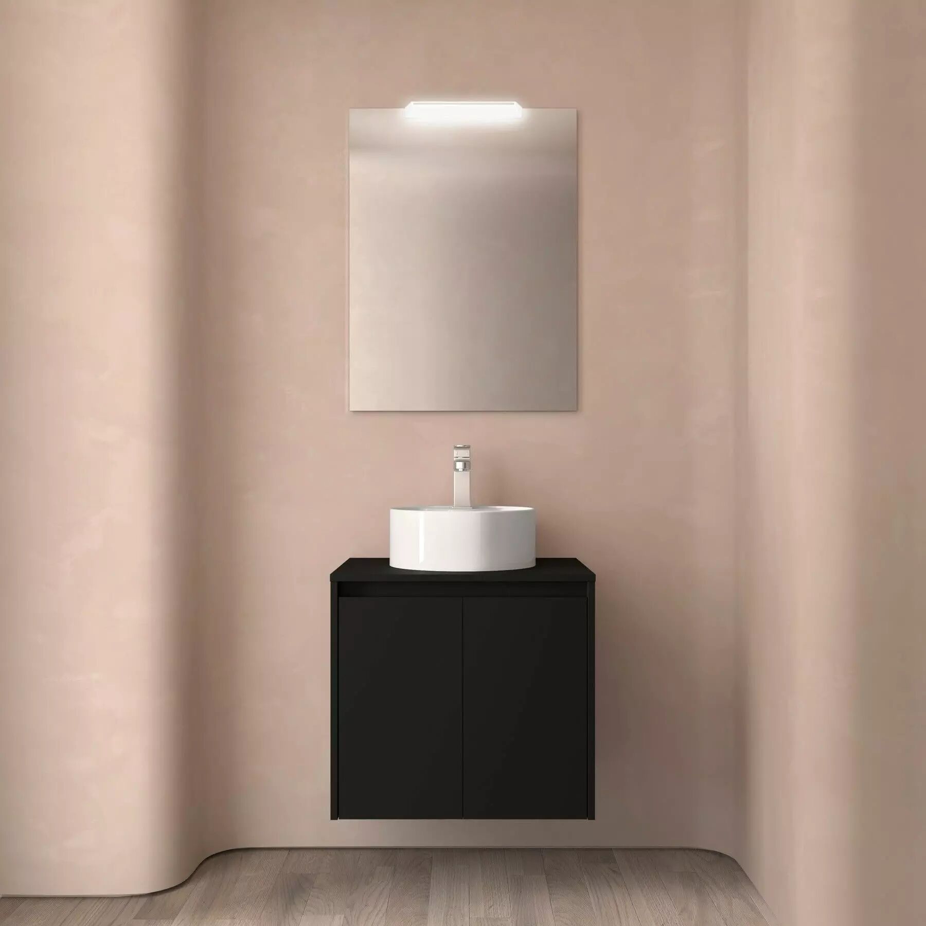 L’ensemble est composé d’un meuble et d'un plan de toilette assorti (vasque, miroir & mitigeur en option)