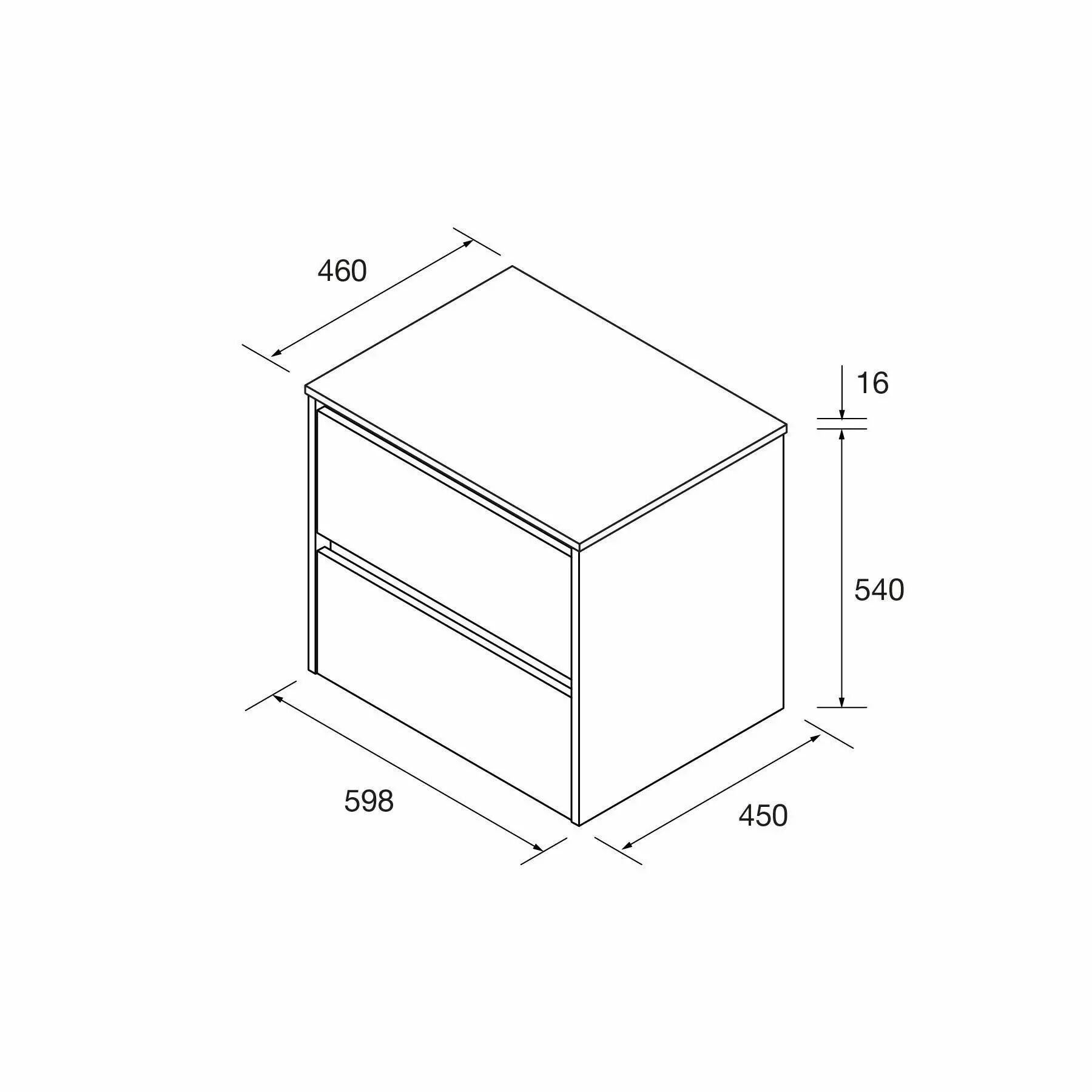 Façade et côtés fabriqués en panneau de particules mélaminé de 16 mm avec chants PVC.
