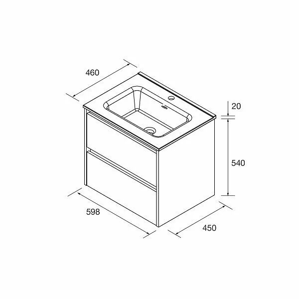 Accueil > Divers > Salgar (Sbath) > Ensemble NOJA 61cm meuble 2 tiroirs Blanc satiné + vasque (miroir en option) - Salgar Réf. 106053