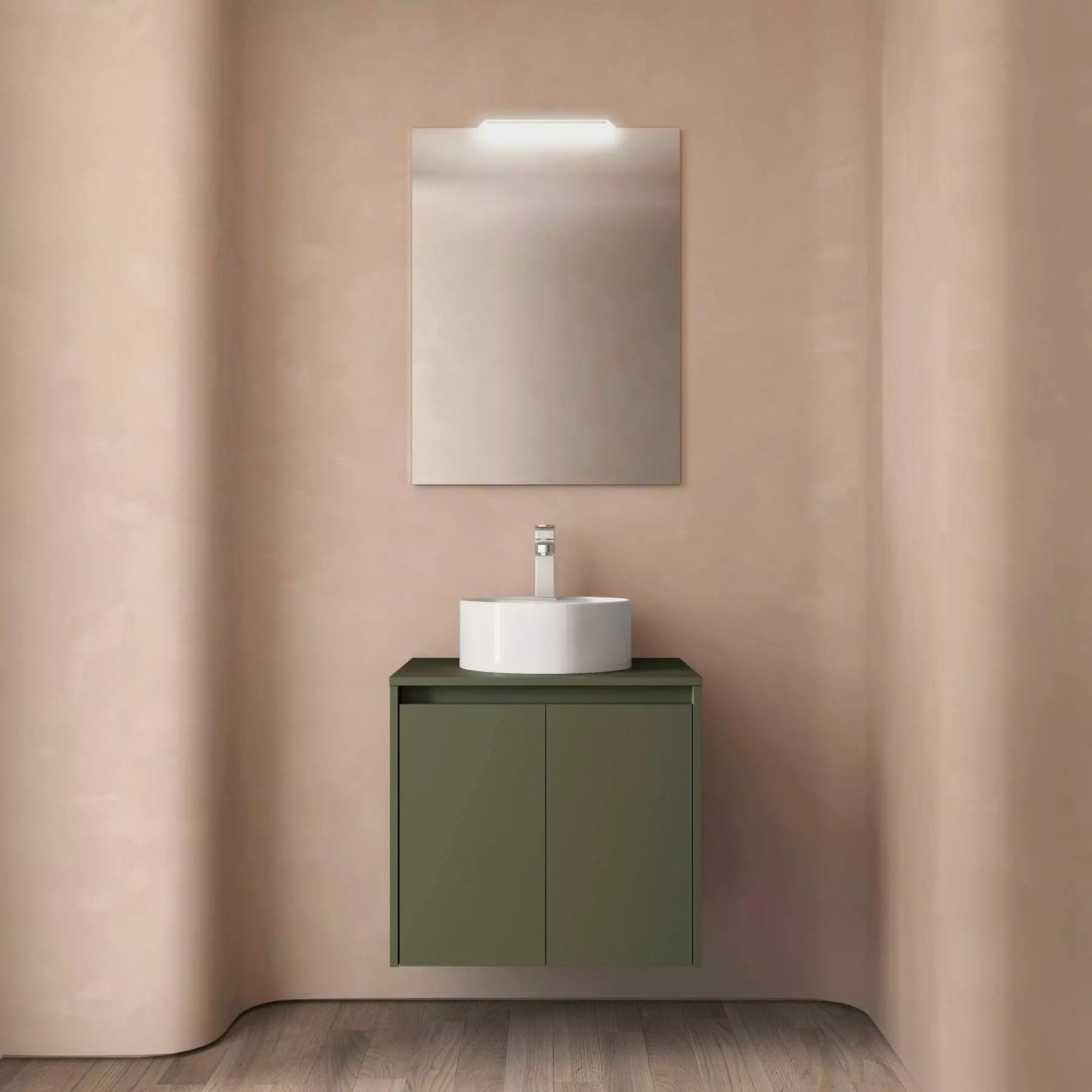 L’ensemble est composé d’un meuble et d'un plan de toilette assorti (vasque, miroir & mitigeur en option)