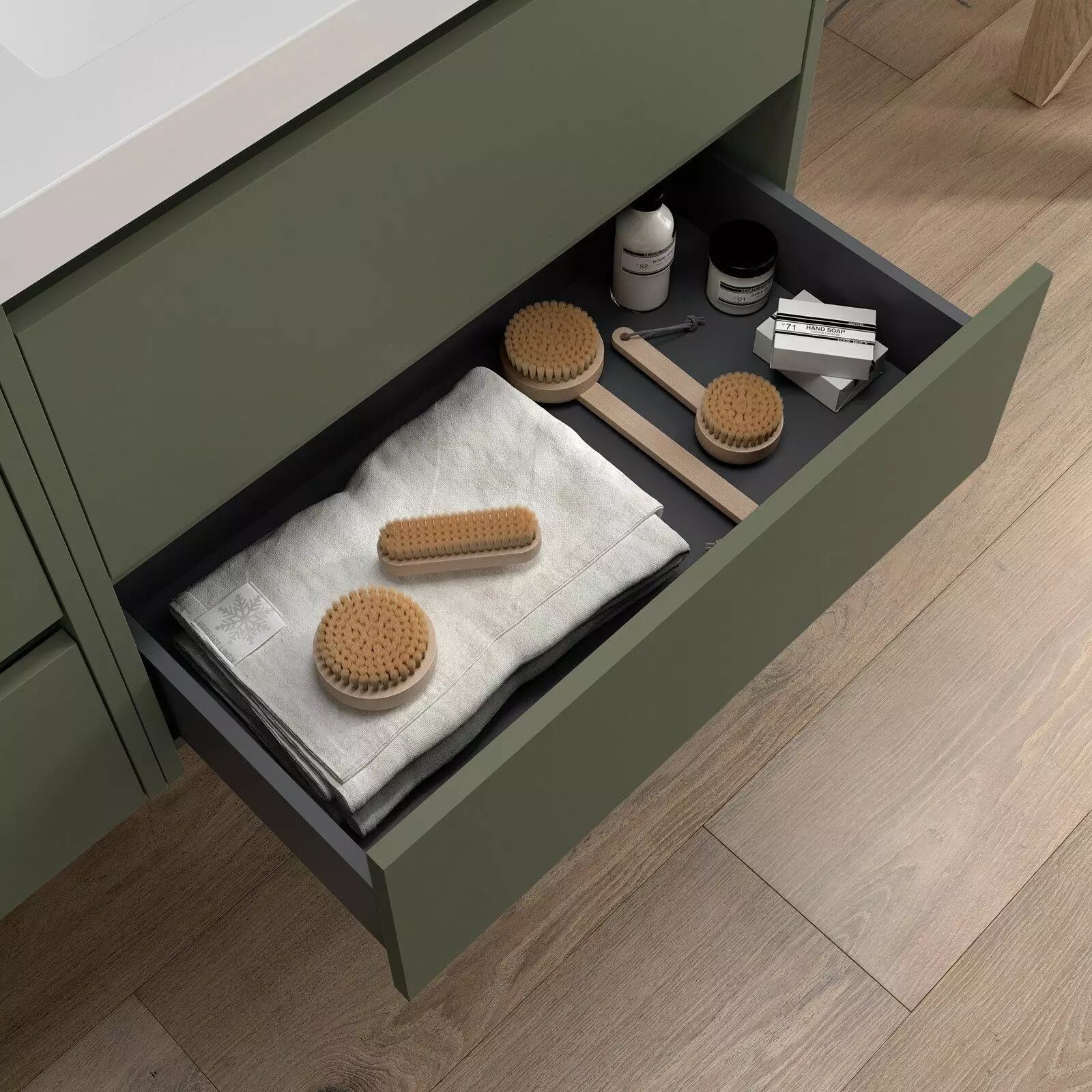 Tiroirs avec rails dissimulés à extraction partielle.