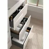 L’ensemble Noja a un design contemporain qui fera de votre salle de bain une pièce à la fois élégante et fonctionnelle tout en vous offrant une grande capacité de rangement.
