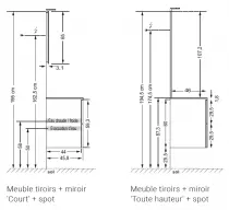 Prévoir sortie de fils à 1,75 m du sol pour le miroir 'Toute hauteur' + spot.