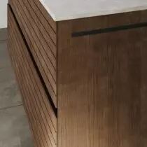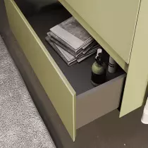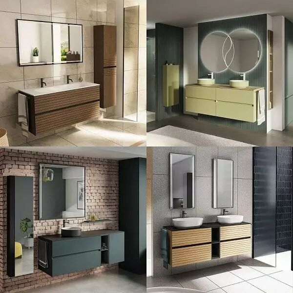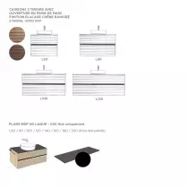 Disponible avec plan-vasque monobloc ou plan compact haute densité laqué verni déperlant ou décor bois pour vasque à poser.