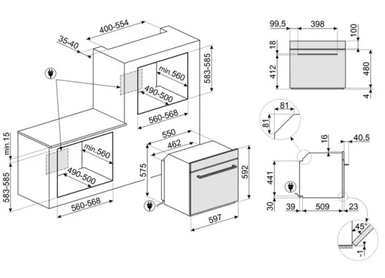 Dimensions nettes de la cavité (HxLxP) 360x460x425 mm