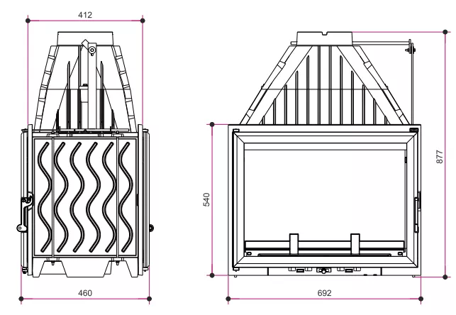 Appareil équipé de deux portes. Idéal en séparation de 2 pièces pour recharger le bois d’un côté et de l’autre.