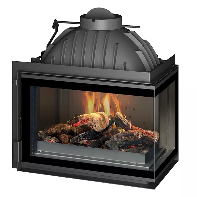Le système vitre propre permet de ralentir l’encrassement du vitrage. Une arrivée d’air sur le haut de la vitre crée un voile de protection. L’ air préchauffé est propulsé le long du vitrage. Il déclenche la combustion des gaz et des matières volatiles protégeant ainsi la vitre contre la fumée et le dépôt de suie.