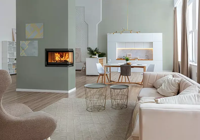 – Jonction des vitres avec une baguette d’angle fine pour meilleure performance de combustion