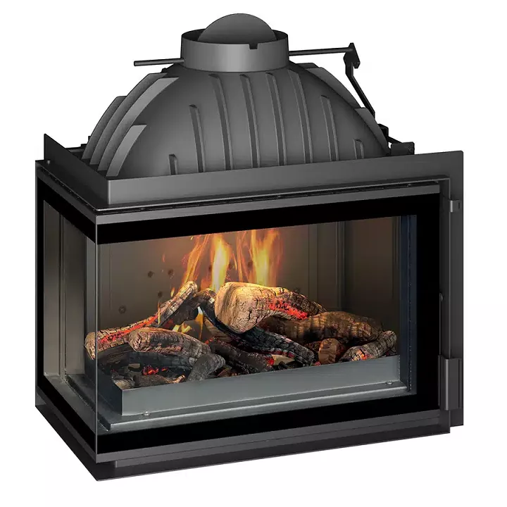 – Jonction des vitres avec une baguette d’angle fine pour meilleure performance de combustion