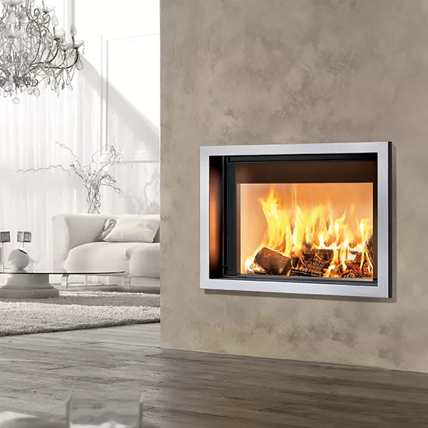 Le système vitre propre permet de ralentir l’encrassement du vitrage. Une arrivée d’air sur le haut de la vitre crée un voile de protection. L’air préchauffé est propulsé le long du vitrage. Il déclenche la combustion des gaz et des matières volatiles protégeant ainsi la vitre contre la fumée et le dépôt de suie.