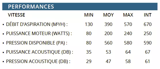 Débit int 660m3/h / max 560 m3/h