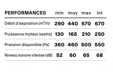 Niveau sonore mini 52 dB (A)/maxi 65 dB(A) / int 68 dB(A)
