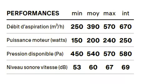 Débit max 570 m3/h/ int 670 m3/h