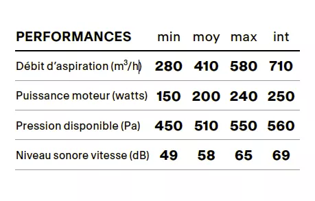 Débit max 580 m3/h/int 710 m3/h