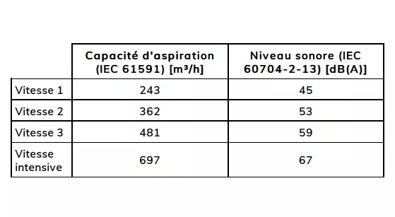 Débit d'air en mode intensif ou "boost" 697 m³/h