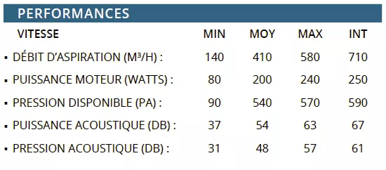 Débit max 580 m3/h/int 710 m3/h