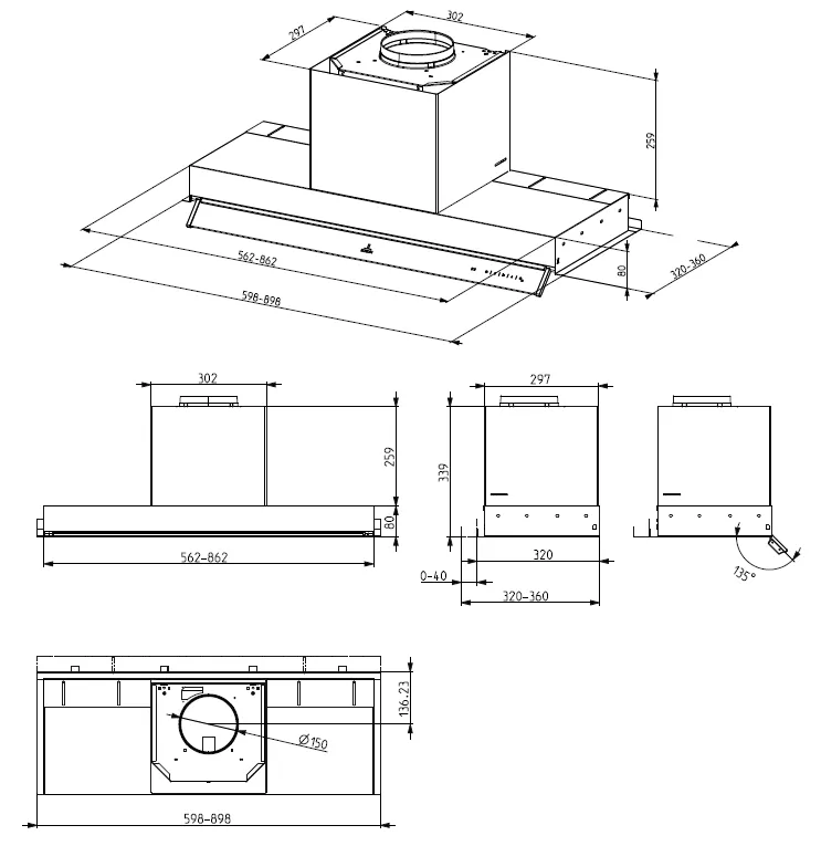 Ce groupe remplace le plancher de meuble, aucune découpe n’est à prévoir. Il s’installe directement dans des meubles hauts de 32 à 36 cm de profondeur (hors porte).