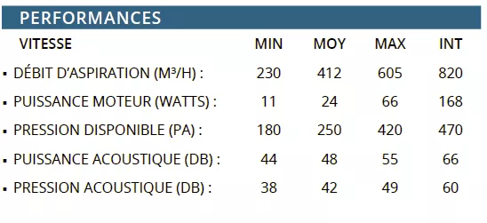 Débit int 820m3/h / max 605m3/h