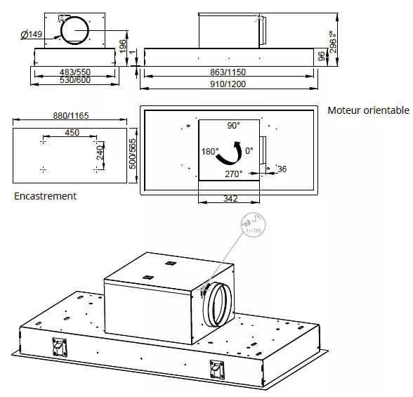 Diamètre de sortie : Ø 150 mm à la sortie du moteur