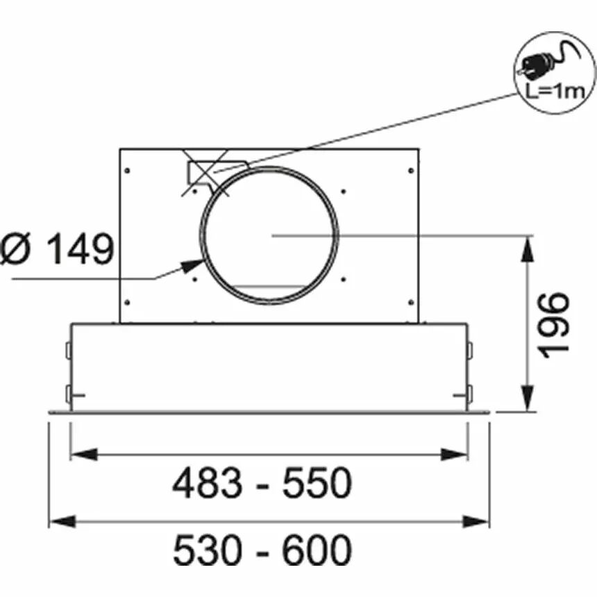Hauteur de pose : 1500 mm maximum du plan de cuisson, 650 mm minimum du plan de cuisson