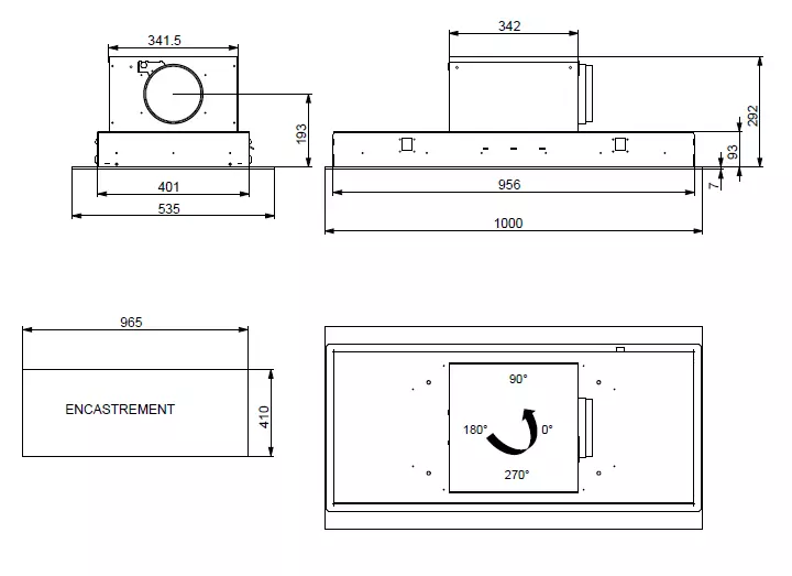 Version motorisée : Prévoir un tuyau Ø 150 mm à la sortie du moteur