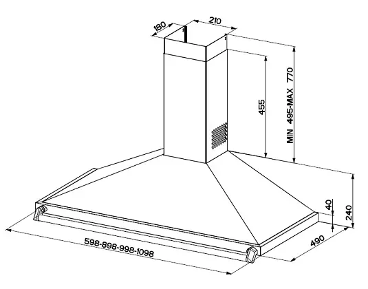 Hauteur conduit de Cheminée (mm) 495 - 770