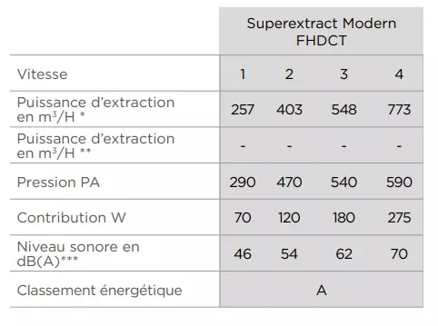 Puissance d'extraction 773m3/h