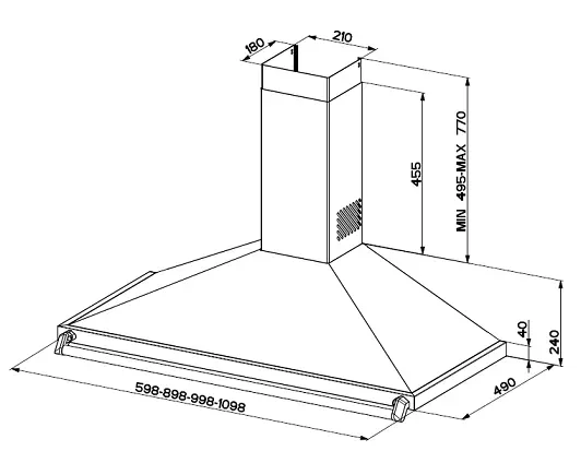 Hauteur conduit de Cheminée (mm) 495 - 770
