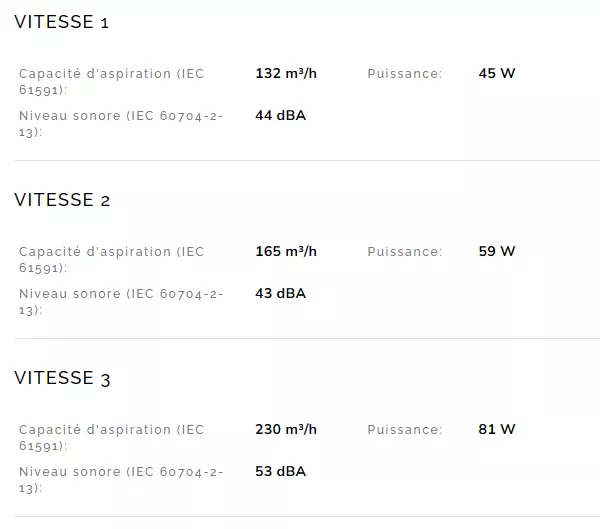 Capacité d'aspiration à l'air libre (P0) 237 m³/h